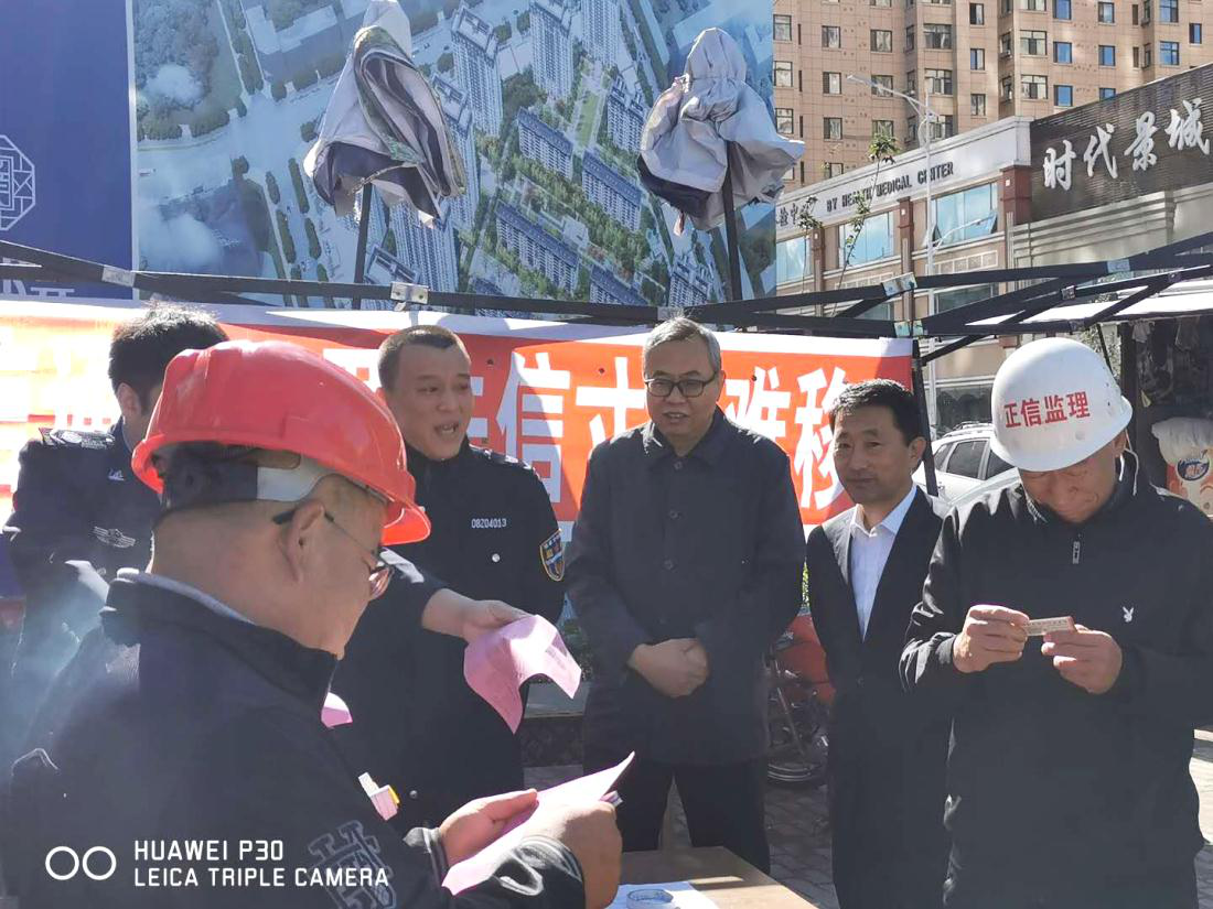 在璞院项目工地,市人社局党组成员周俊向华强集团建筑工程公司负责人认真了解了项目用工情况,对该公司认真签订劳动合同,履行合同义务,按时发放农民工工资、按时缴纳社会保险的诚信用工做法给予了充分肯定。华强集团建筑工程公司负责人现场签订了“企业诚信用工承诺书”,并表示将始终坚持“诚信为本”的理念,确保依法依规用工,切实履行企业义务,使劳动者合法权益得到实实在在的保障。劳动保障监督部门工作人员还向现场农民工发放了《农民工农资维权口袋书》《根治农民工工资拖欠普法宣传册》40多本。