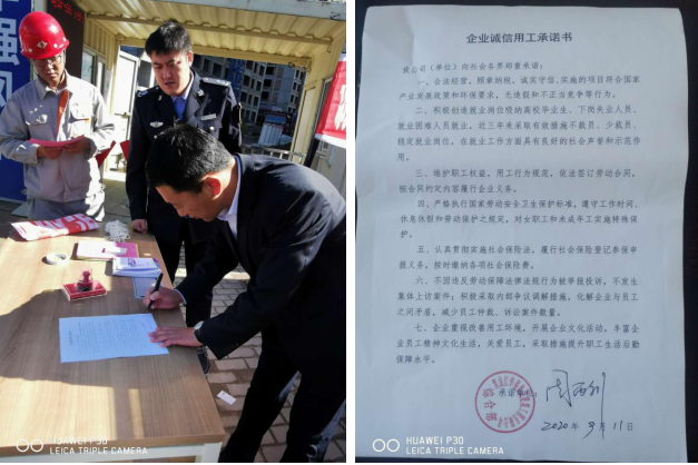 与此同时,我局还下发了《关于开展“百家企业诚信用工承诺”活动的通知》,号召全市首批一百家企业签订“企业诚信用工承诺书”,树立诚信用工企业形象,打造诚信用工的优质环境。
