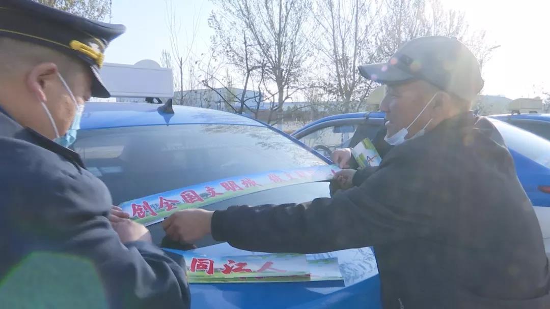 出租车是城市的流动窗口,彰显城市的文明程度。为响应我市创建文明城市的号召,提升行业形象,10月25日,同江市交通运输局联合同江市文明办来到出租汽车有限公司,开展张贴创城标语活动。