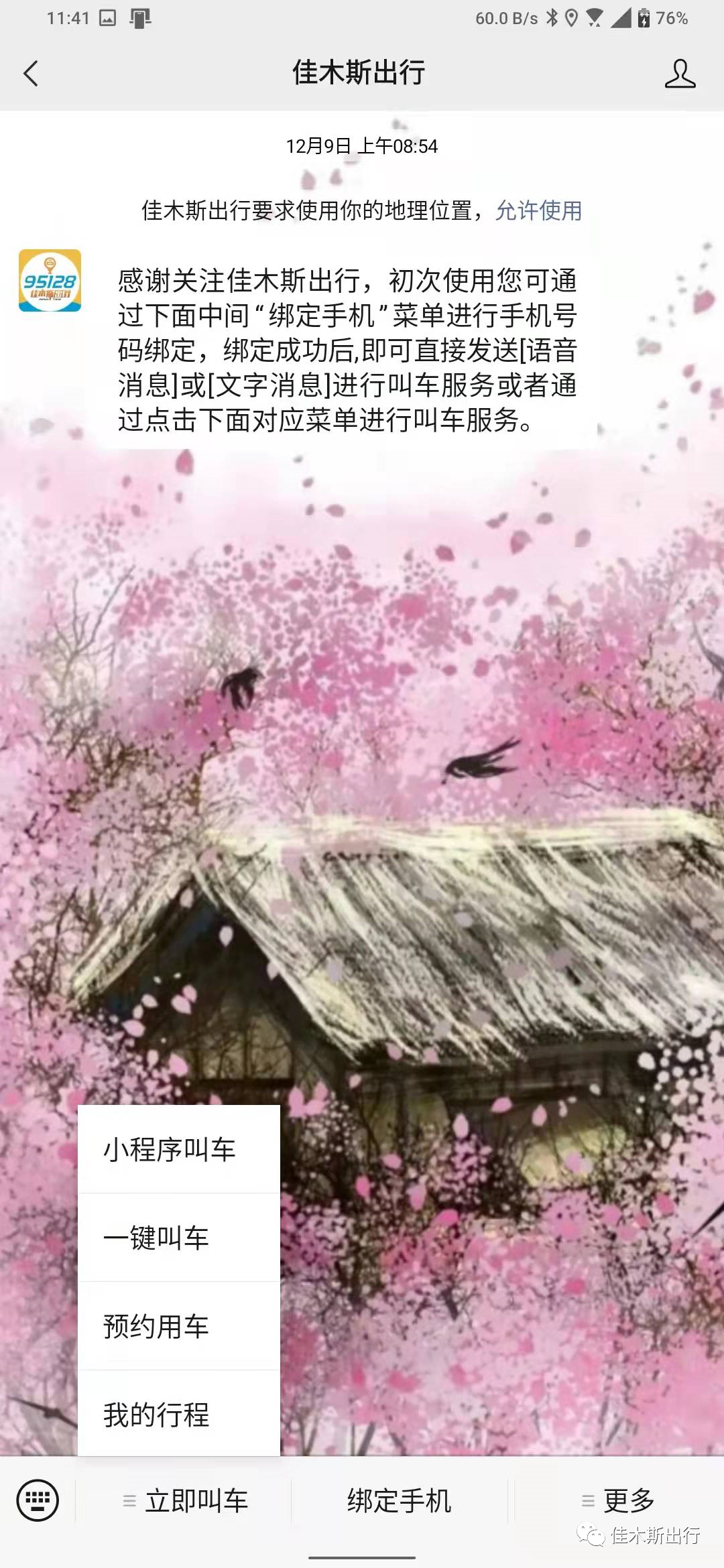 同时我公众号平台及“佳木斯出行”APP还支持预约用车的服务功能。