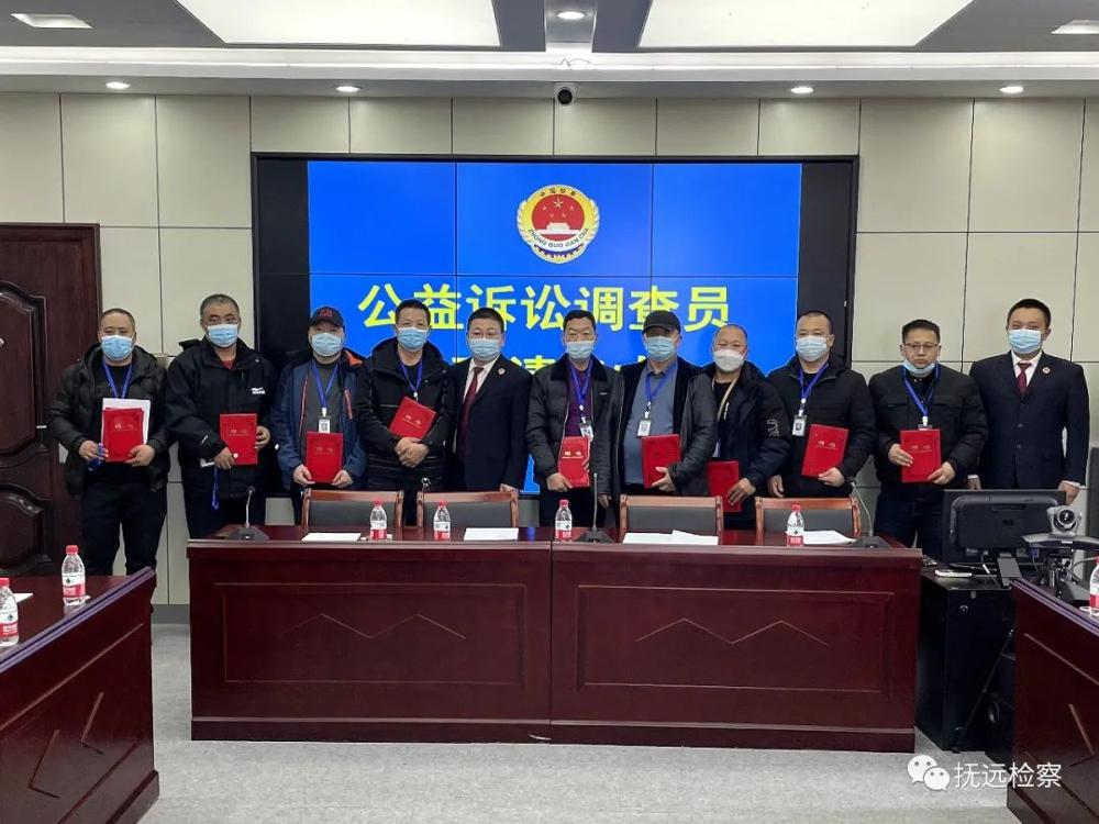 为形成检察公益诉讼监督与行政执法监管双赢、多赢、共赢的社会治理效果,3月16日,抚远市人民检察院举行聘请仪式,聘请抚远市农业农村局下辖16名渔场领导干部及各捕捞作业队管理人员,成为抚远市人民检察院公益诉讼调查员,并颁发了聘书及工作证件。
