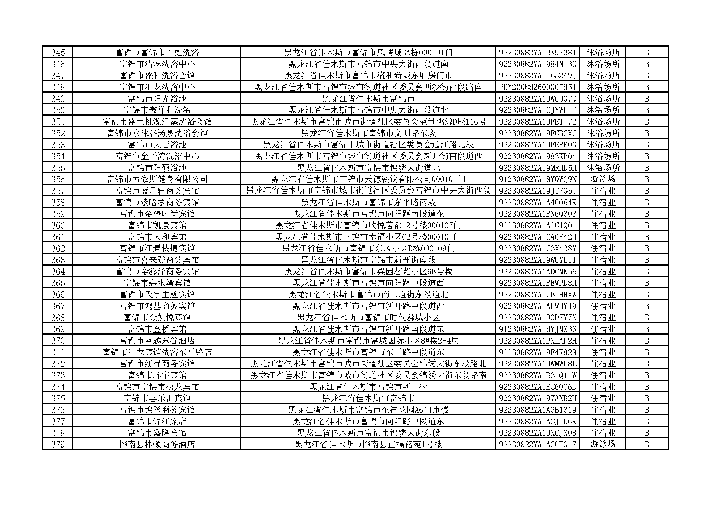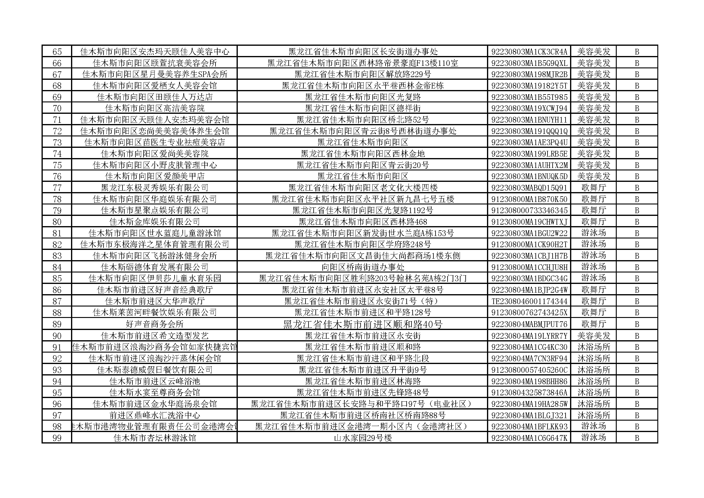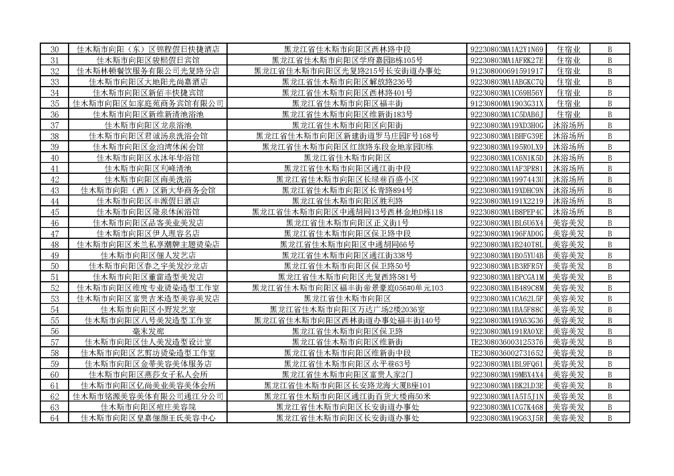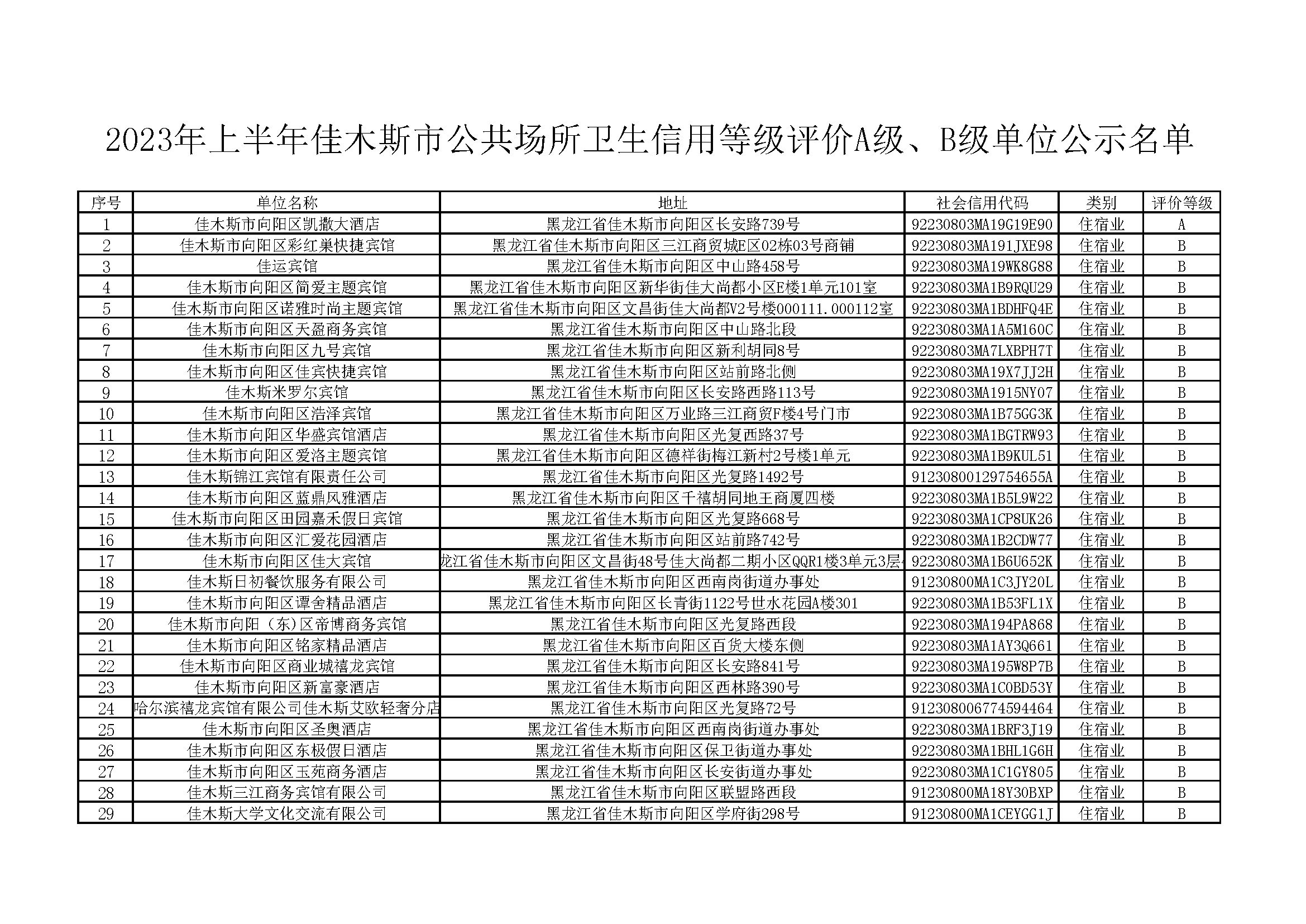 附件:2023年上半年佳木斯市公共场所卫生信用等级评价A级、B级单位公示名单