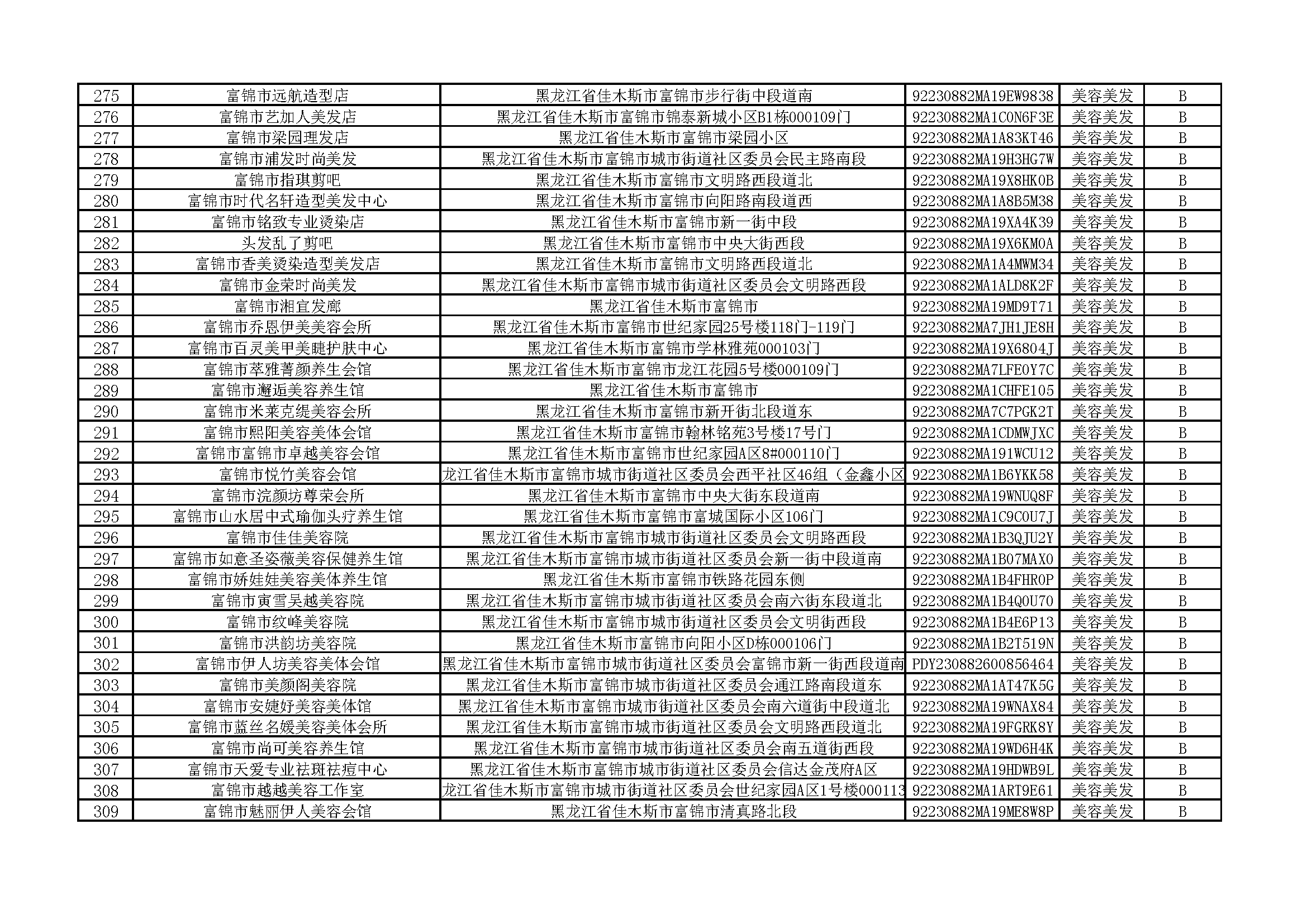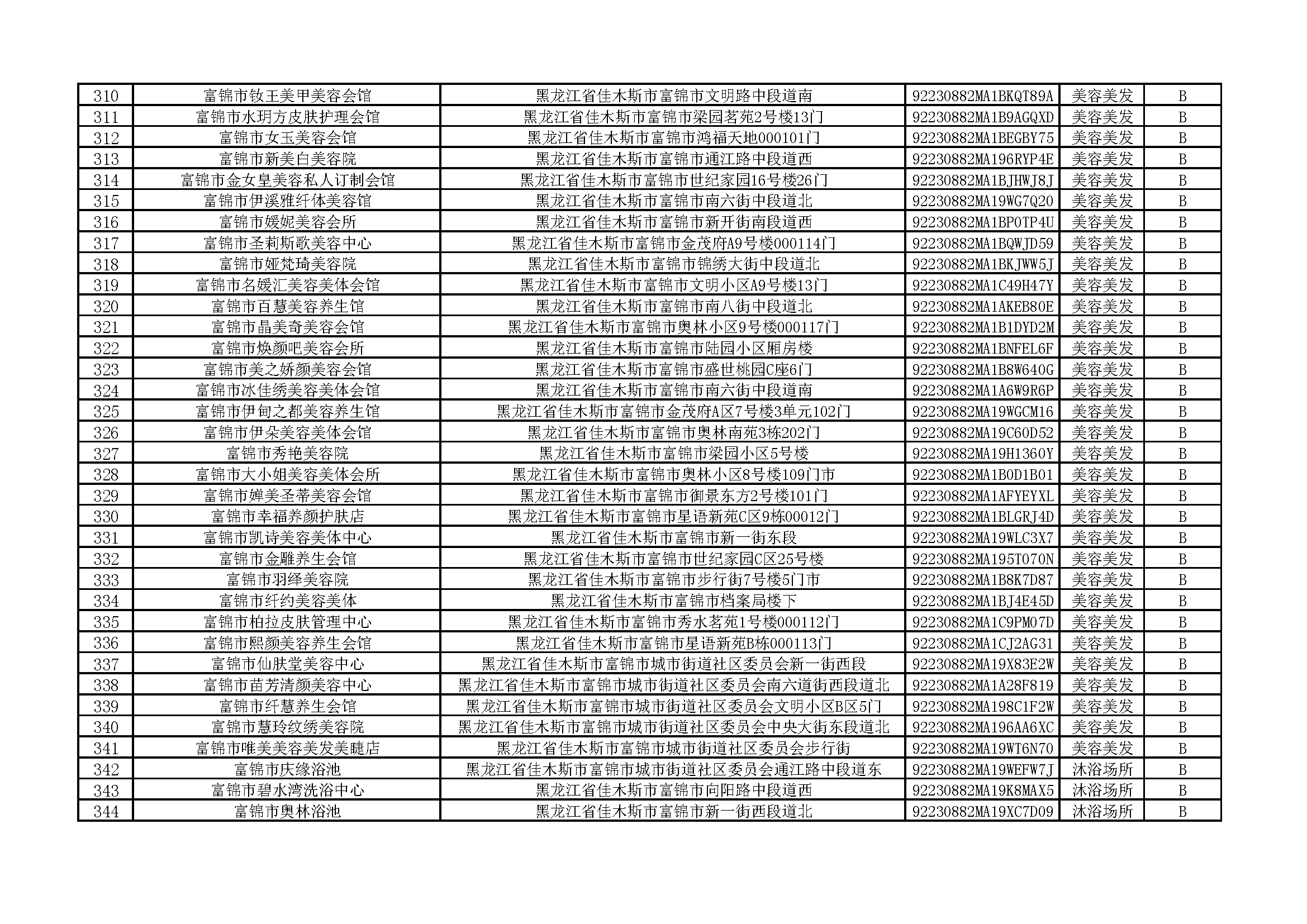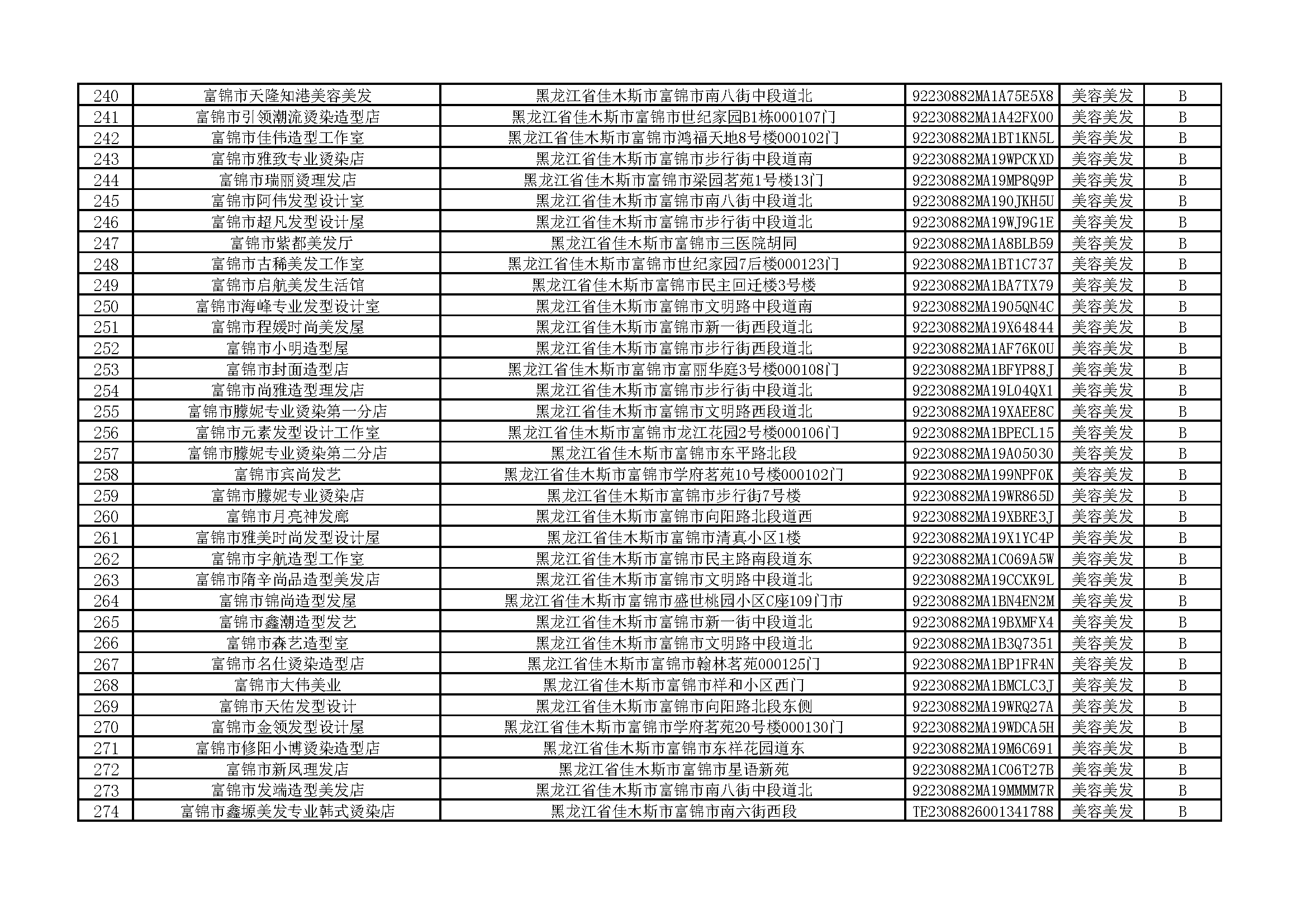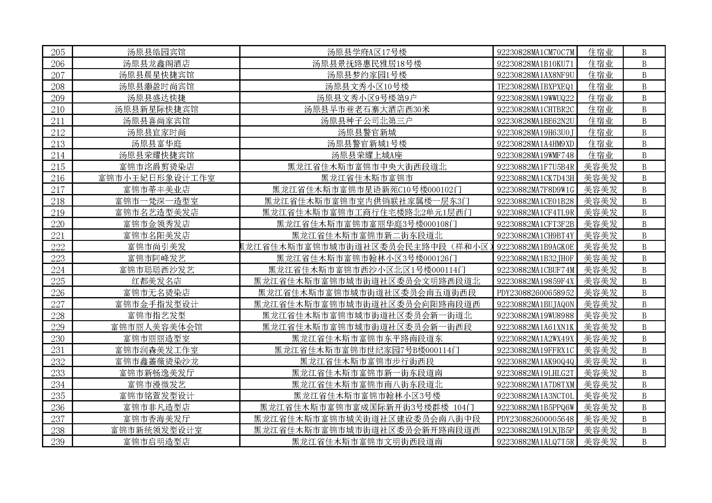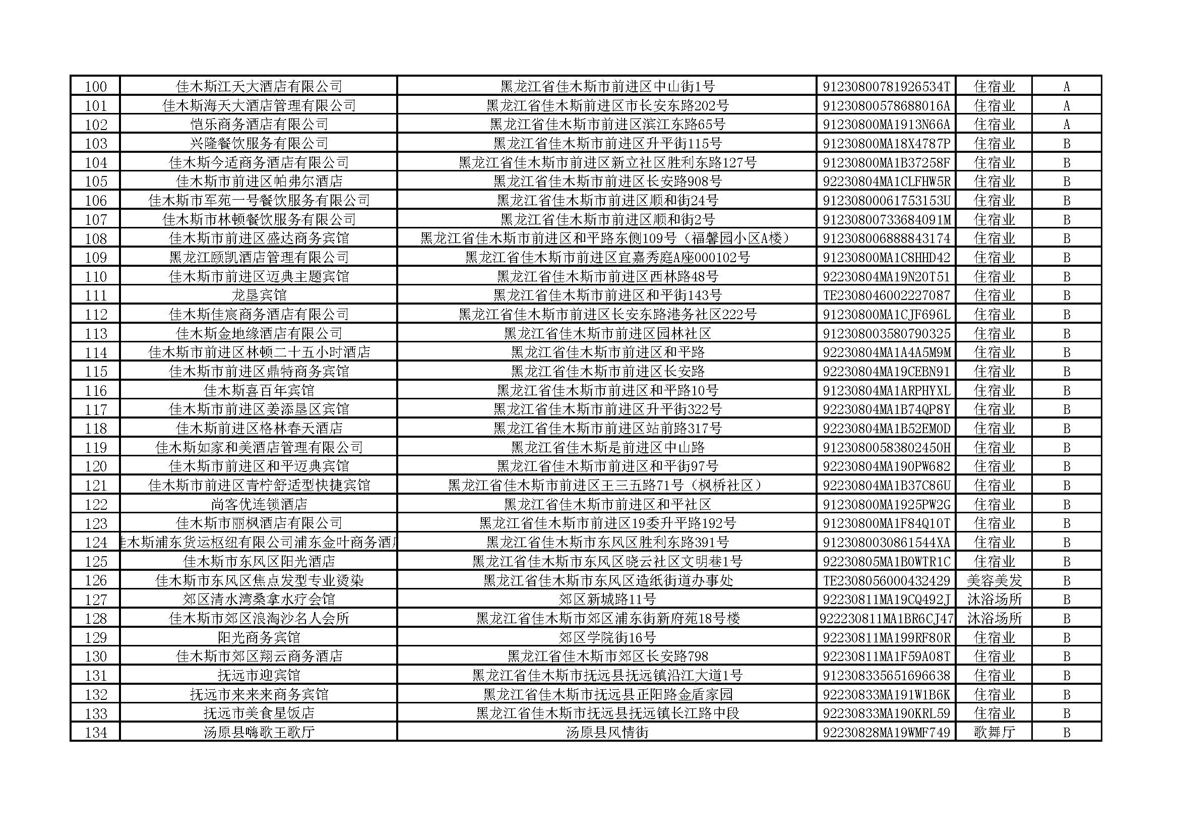 附件:2023年上半年佳木斯市公共场所卫生信用等级评价A级、B级单位公示名单