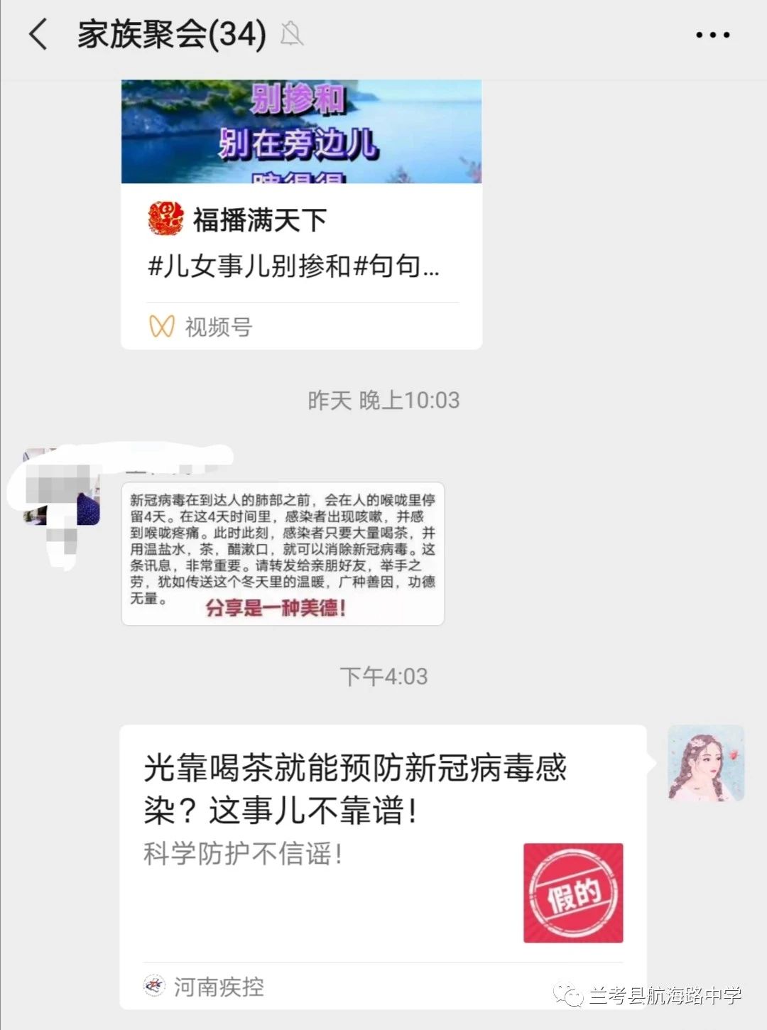 于是,小编分分钟转发了“河南疾控”的一篇文章到家族群里: