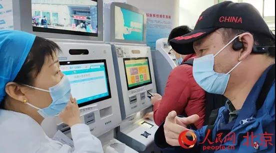 北大首钢医院工作人员帮助患者使用信用医疗系统。