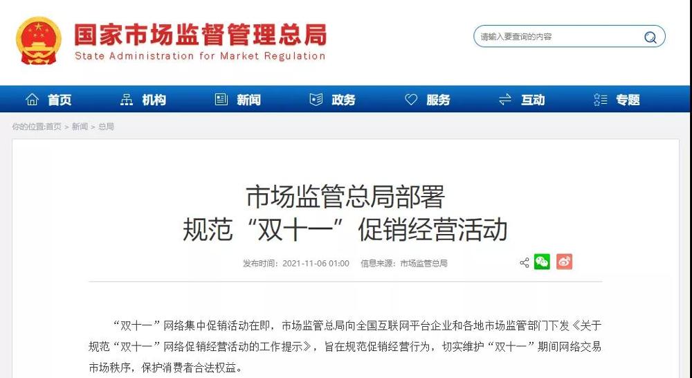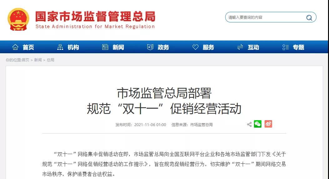 市场监管总局:“双十一”禁止“先提价后打折”!