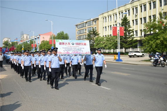 启动仪式上,11支代表队身着统一服装,整齐列队,在旗手的引领下,迈开矫健的步伐,精神饱满的沿着汤原县主要街道进行了徒步活动,旨在用实际行动宣传禁毒理念,进一步扩大毒品预防教育工作的社会影响,使“健康人生 绿色无毒”的禁毒理念更加深入人心,让更多的群众关注禁毒工作,了解毒品危害,增强防毒、识毒、拒毒意识,形成全民参与禁毒的浓厚氛围。