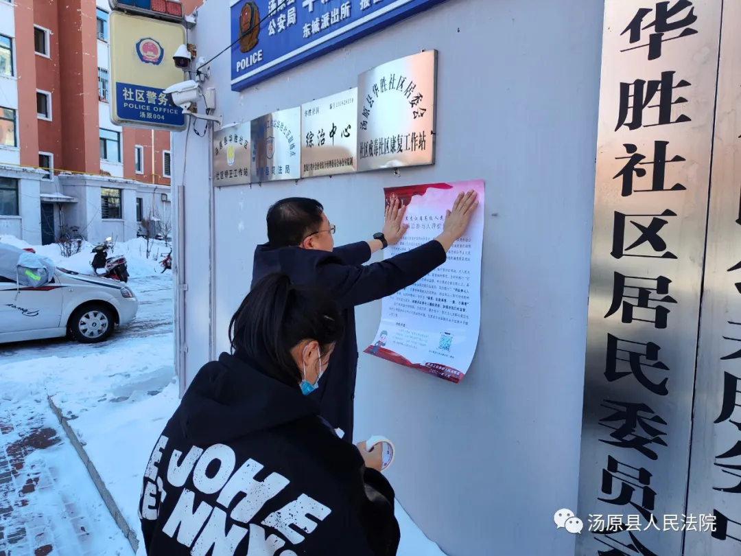随后,各小组按照划分的区域,走进机关、社区、村屯、银行、企业等场所张贴“诉讼参与人满意度评价”宣传海报,共计500余份,确保实现辖区全覆盖。
