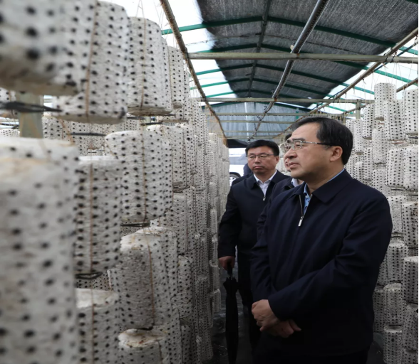 王秋实来到汤原县胜利乡福隆村食用菌大棚,查看木耳种植生产情况,现场询问了解汤原县木耳产业发展、产品销售和质量管控等情况。