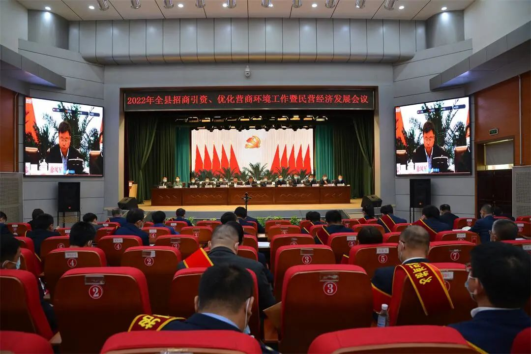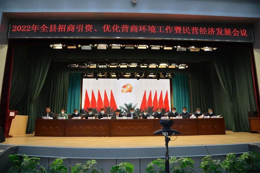 5月9日上午,2022年全县招商引资、优化营商环境工作暨民营经济发展会议在县会议中心召开。会议主要任务是认真总结2021年招商引资和项目建设工作,安排部署全县新一轮招商引资工作,动员全县上下进一步统一思想、凝聚共识,坚定信心、迅速掀起招商新热潮,加快形成大抓招商大上项目新局面,推动县域经济高质量发展迈上新台阶。县委书记徐凤军,县人大常委会主任邹卫东,县委副书记、县长杨宏志,县政协主席马广胜及县四个班子领导出席会议。会议通过视频形式召开。
