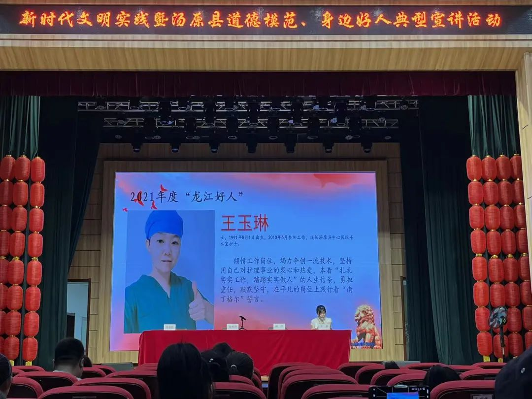本次宣讲邀请县融媒体三位播音员宣讲2021年“龙江好人”获得者——汤原县第一中学教师万城秀、汤原县中心医院护士王玉琳、汤原县公安局民警李小龙。