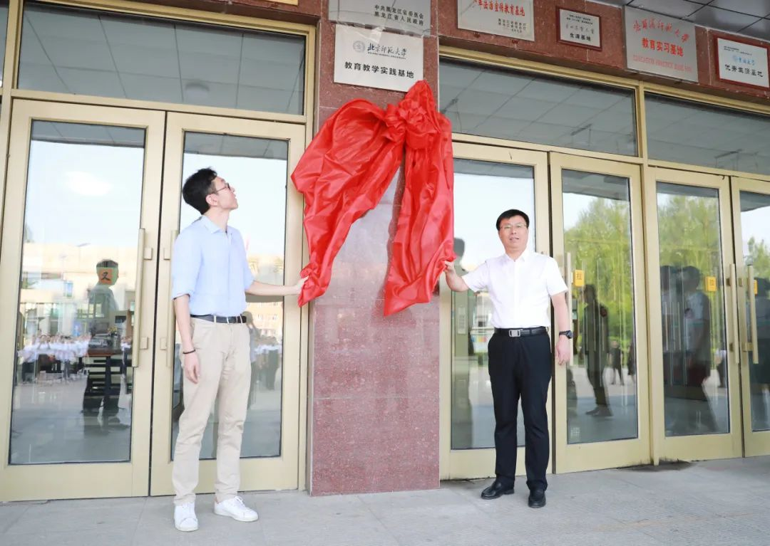 北京师范大学珠海校区纪委书记王法新,县委书记徐凤军共同为教育教学实践基地揭牌。