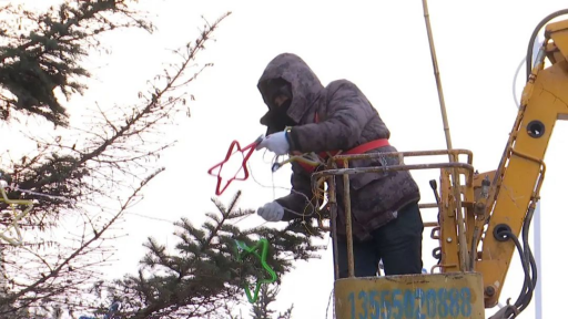 元旦佳节,家家户户都在家中温暖过节,稍显冷清的大街上,随处可见负责城市亮化的施工人员紧张忙碌的身影。他们在举高车的帮助下靠近树冠,将中国结、大灯笼、五角星、麦穗等五颜六色的彩灯缠在枝干上,仔细地排线安装。等到夜晚来临,这些五颜六色彩灯便会为县城的街道增添更多靓丽的色彩。