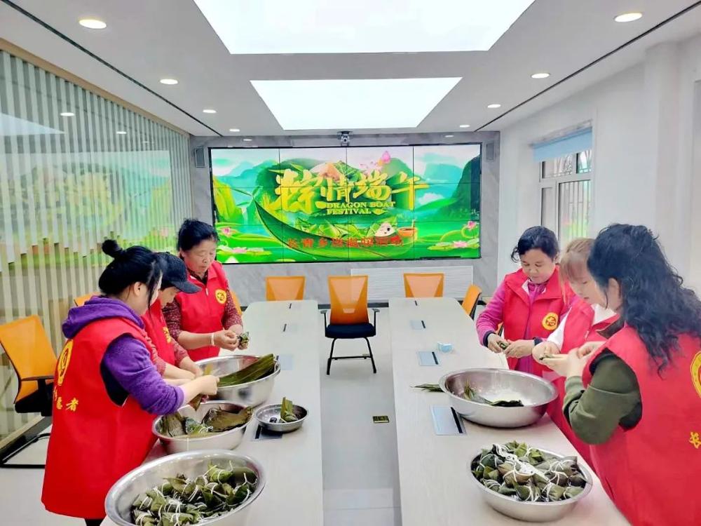 活动中,志愿者们准备好了糯米、粽叶、红枣等材料,她们亲自动手,都拿出了看家本领,熟练地捋粽叶、做漏斗状、填糯米、放红枣、压紧实、封口、扎捆,一个个有模有样的粽子迅速成型,现场大家还分享着包粽子的经验,欢声笑语不断。