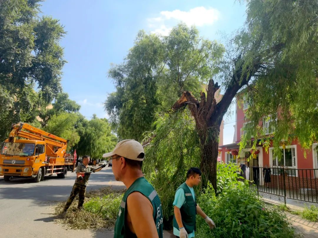 园林管理部门派出工作人员对倒塌树枝进行伐除,同时,为了确保施工安全,工作人员对周边人群进行疏散,并对过往居民进行安全提醒。过往居民对社区及时解决民忧、清理危树,保障居民群众平安的行为给予高度赞誉。