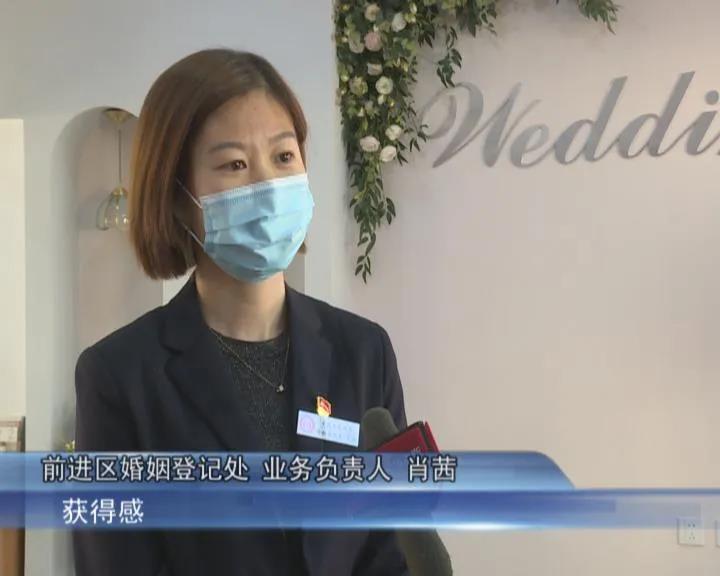 前进区婚姻登记处 业务负责人 肖茜:“我们这样做的目的是为了真正地做到缩短群众办事时间,减少群众跑腿次数,真正做到喜事快办、联办,有效提升了群众的仪式感、幸福感、获得感。”