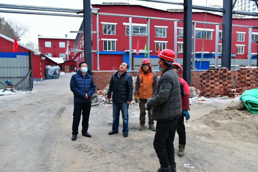 在佳电股份有限公司项目施工现场,黄远志详细了解施工进度、安全生产、应对暴风雪准备措施落实情况,并现场叮嘱施工人员要注意施工安全。他指出,在项目建设冬季施工抢进度赶工期间,要时刻紧绷安全生产这根弦,牢固树立红线意识,一刻也不能放松;要时刻关注天气变化,如遇大风暴风雪等极端天气,停止室外作业并保证施工现场安全。同时,要关注关心施工场地工人冬季作业保暖防寒。