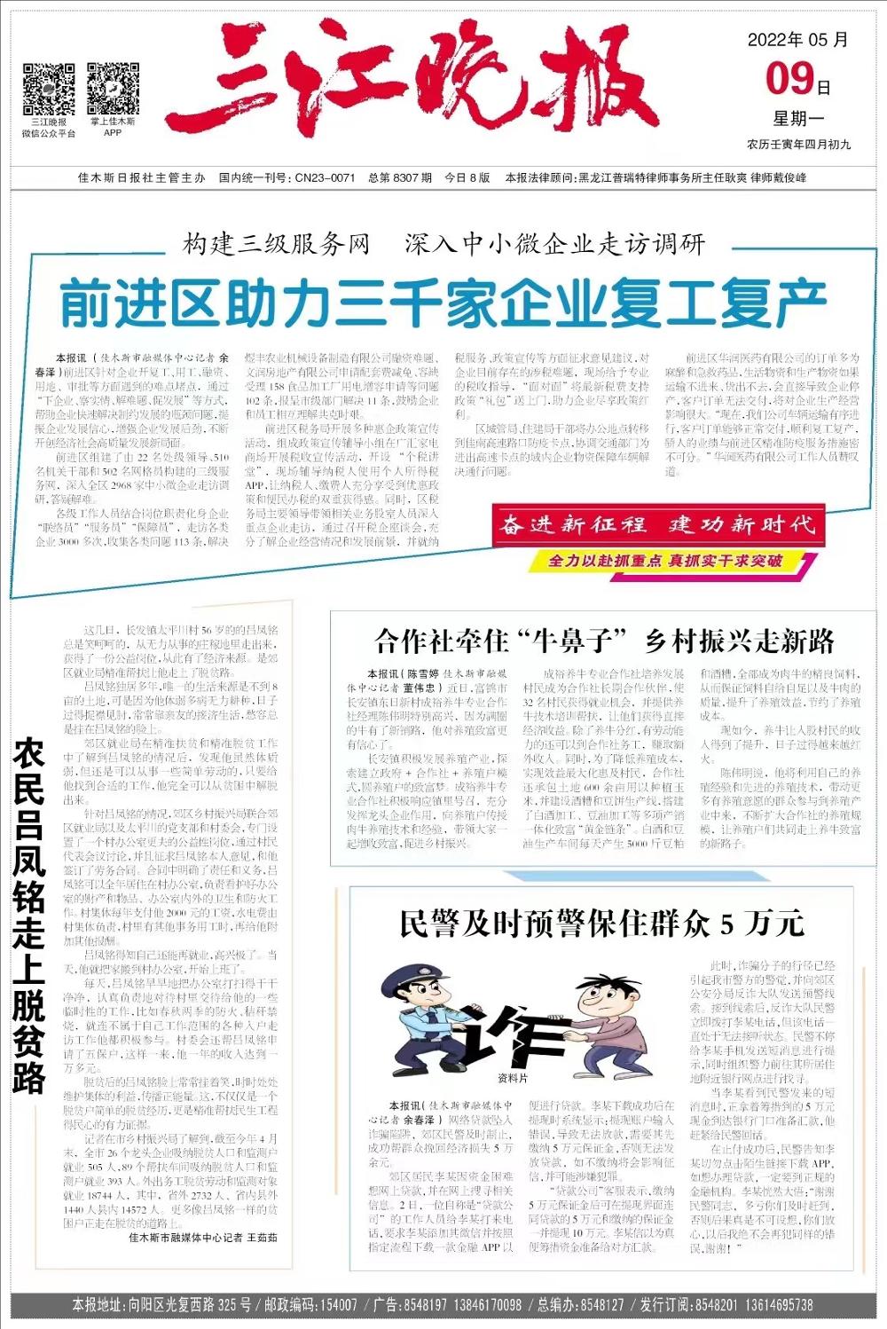 三江晚报刊发:构建三级服务网 深入中小微企业走访调研|前进区助力三千家企业复工复产
