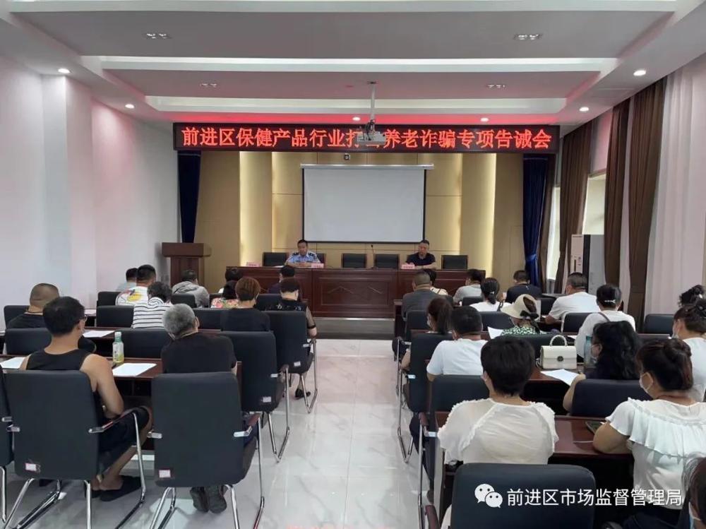 为确保前进区打击整治养老诈骗专项行动取得实效,以实际行动促进市场主体诚信经营,切实维护好老年人的合法权益。近日,区市场监督管理局召开“食品、保健产品、医疗器械”等市场主体销售环节提醒告诫会。市市场监督管理局领导、区市场局领导及相关部门负责人、80余家市场经营主体负责人参加会议。