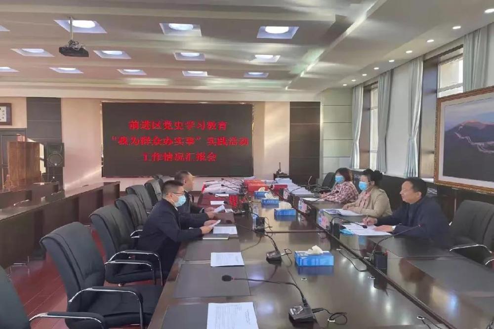 市委党史学习教育第五巡回指导组听取前进区党史学习教育工作情况的汇报,并按照市委党史学习教育领导小组办公室重点内容的细化分解要求,现场查看了前进区党史学习教育档案资料,交换了指导意见。市委党史学习教育第五巡回指导组认真查看了党史学习教育开展情况以及“我为群众办实事”实践活动开展情况,并对前进区党史学习教育开展情况给予充分肯定。