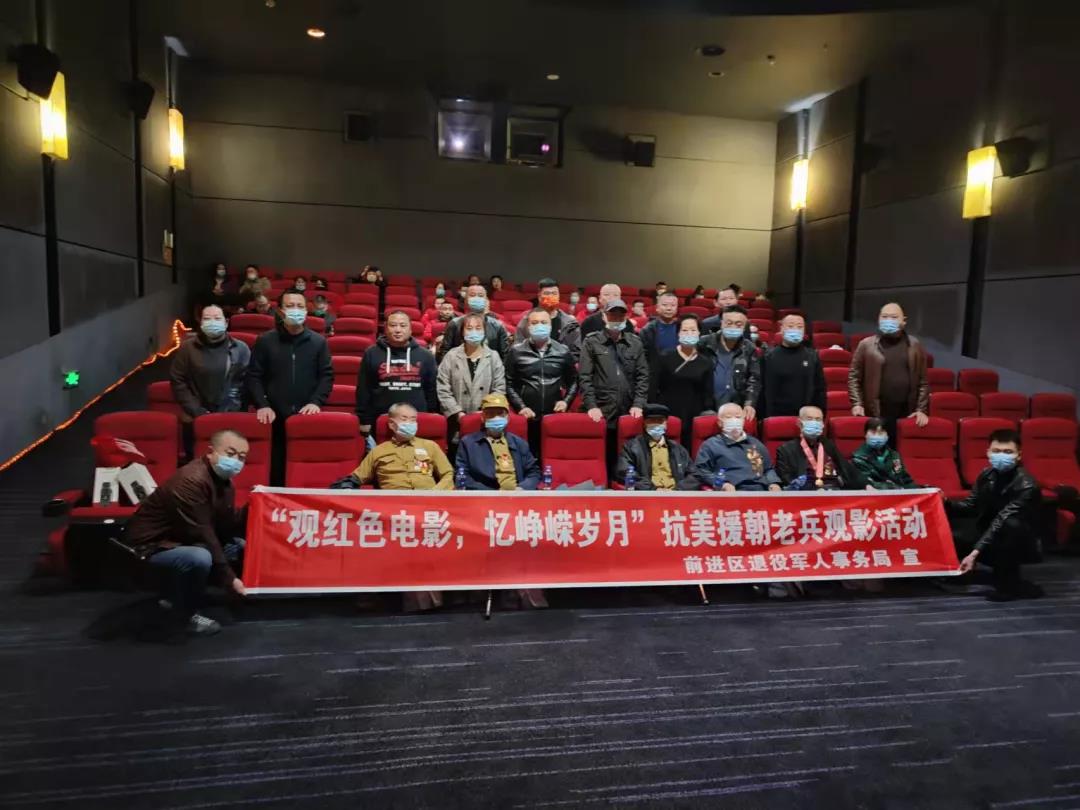 为庆祝中华人民共和国成立72周年、中国人民志愿军抗美援朝出国作战71周年,进一步扎实推进党史学习教育。10月15日下午,在大商新玛特购物广场的大力支持下,前进区退役军人事务局邀请辖区部分抗美援朝老兵观看了国庆献礼电影《长津湖》,一起“穿越”回71年前的时空,重温那段波澜壮阔的历史,向老兵们致敬。