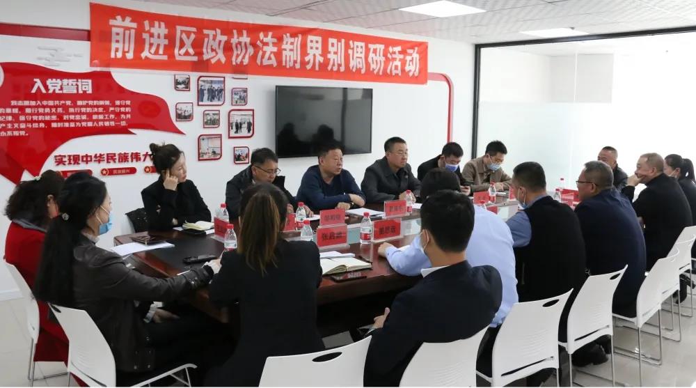 首先,调研组来到前进区综合治理信息指挥中心实地调研。随后,到前进区永安街道听取街道网格化工作情况介绍,并在街道会议室进行了座谈。