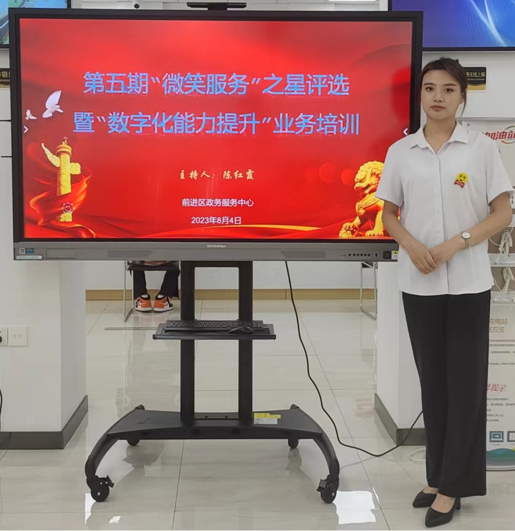 近日,前进区政务服务中心持续推进市“微笑服务年”活动,开展第五期“微笑服务之星”评选暨数字化能力提升业务培训活动。提升窗口单位服务质量和服务水平,为广大群众提供优质、规范、高效的服务。