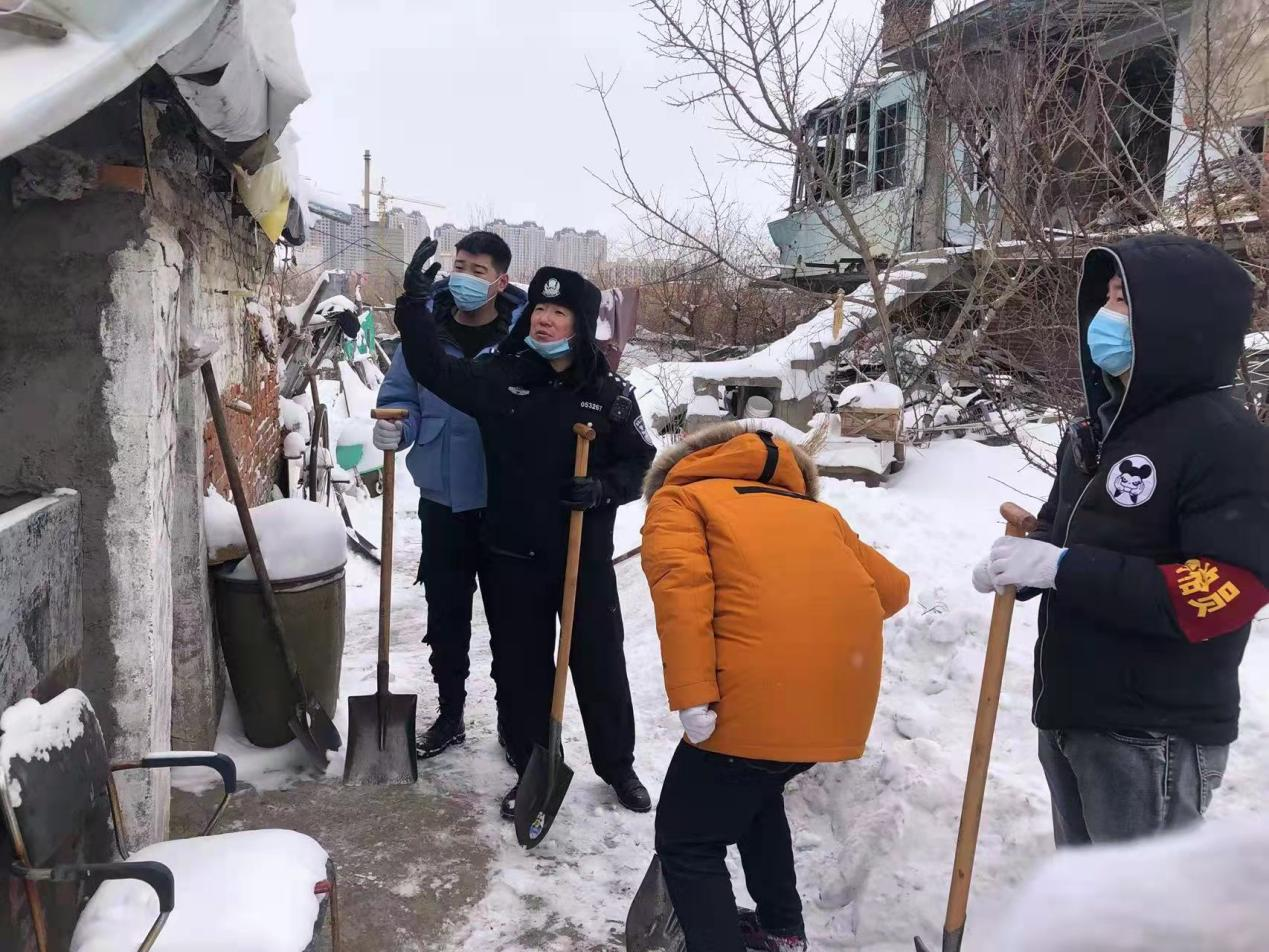 一番忙碌过后,门前屋后的积雪被清理的干干净净,老人们激动的拉着民警的手:“谢谢小甘,如果不是你们来,这一院子积雪真不知道咋办好了,这下可以放心地出门了。”
