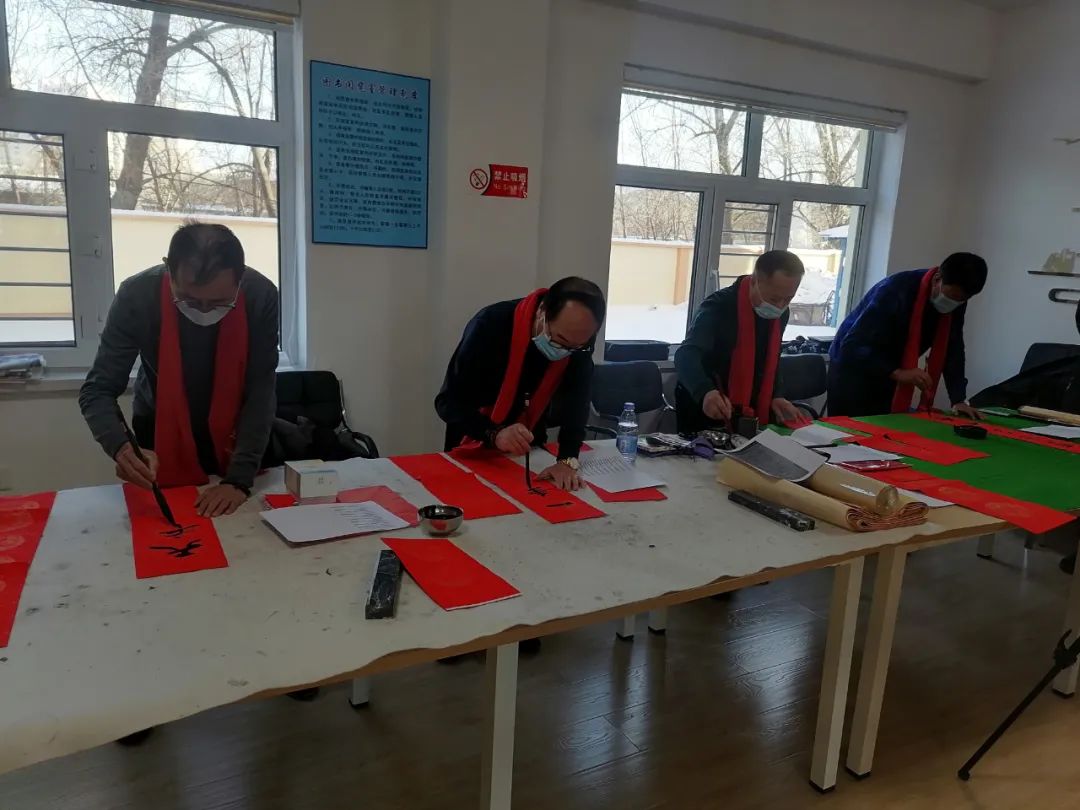 佳木斯市民间文艺家协会、东风区工商联书画院的志愿者们在居家养老中心的书画桌上为困难家庭和前来参加活动的居民书写春联,书法家们泼墨挥洒,现场书写原汁原味的春联,尽情抒发着自己内心对美好生活的情感。