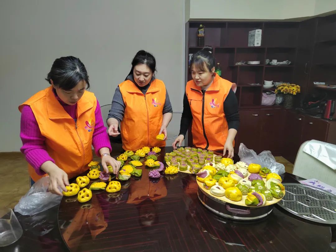活动现场,大家挽起袖子,彰显技能,分工合作,和面的和面,烧水的烧水,忙的不亦乐乎。不一会,热气腾腾的各色花样馒头出锅了,浓浓情感随着花样馒头的阵阵香味弥漫在空气中。社区居民张大爷说:“街道为我们想的真是周到,每逢节日都记得我们,我们打心眼里感到很知足,感谢这些党员,谢谢街道、感谢社区。”