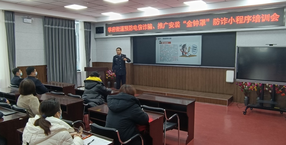 近年来,电信诈骗层出不穷,涉案金额呈不断上升趋势,许多群众深受其害。为深入打击电信诈骗犯罪,进一步提升辖区内居民的反电诈意识,学府街道联合桥南派出所组织开展了“预防电信诈骗,推广安装金钟罩防诈小程序”培训会,让网格员正确引导群众注册使用“金钟罩”反诈小程序,提高反电诈意识,守住自己的“钱袋子”。