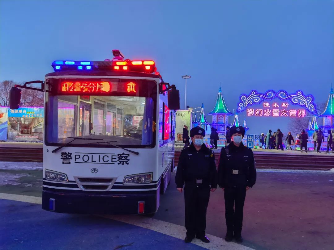 春季期间,为了进一步做好疫情防控工作,有效消除冰雪旅游景区公共安全隐患,向阳公安分局针对到冰雪大世界游玩的市民增多情况,及时调整警力部署,为松林派出所在辖区冰雪大世界景区设置移动警务车,做到警灯闪烁、警察常在,不断提高街面见警率,为来冰雪大世界景区的游客提供安全保障。