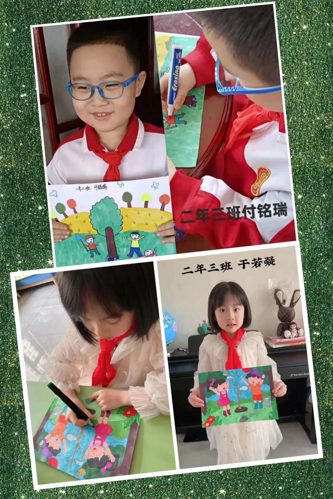 我的小手添新绿。一二年级的小朋友们在辅导员和家长的指导下积极行动起来“绘”出心中的绿色,精心创作出一幅幅设计精美、图文并茂的图画。
