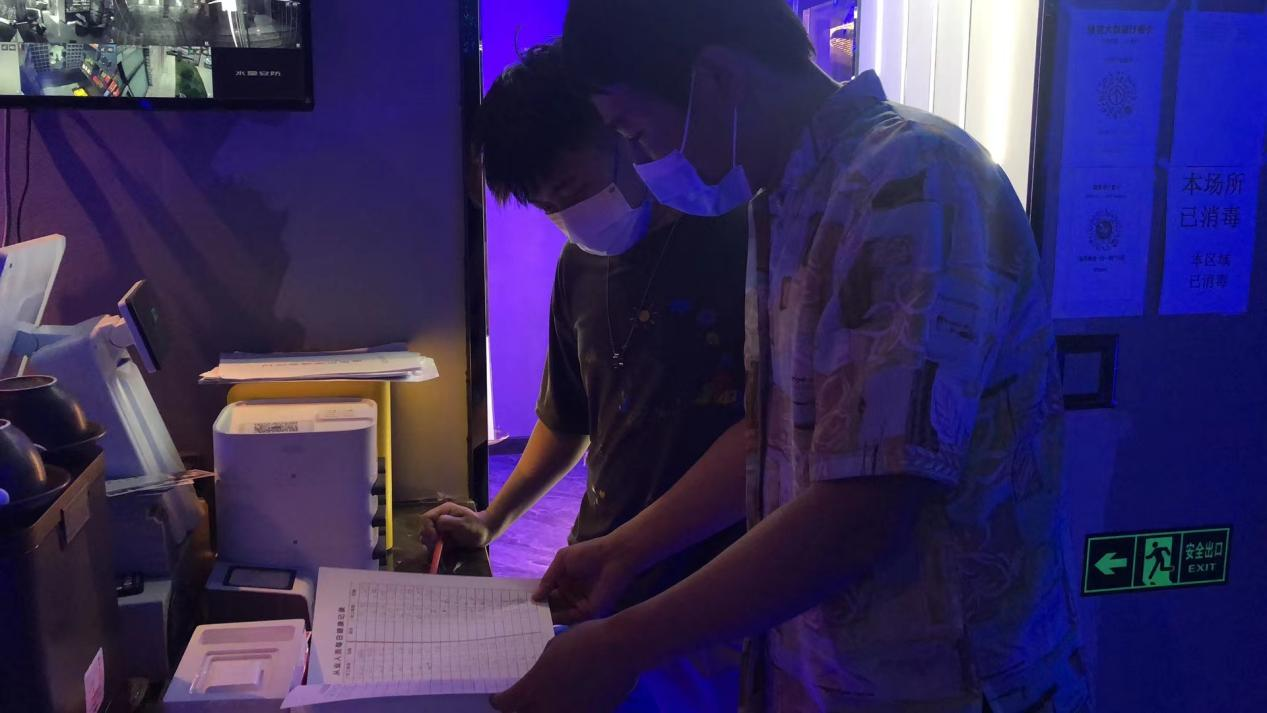 此次行动共出动检查组3组次,检查人数6人次,根据梳理出的辖区娱乐场所情况,开展全覆盖酒吧、茶吧行业“扫街”行动,集中酒吧、茶吧24家次,对各经营单位防疫“三宝”落实、经营场所消杀、场所码查验、台账内业等情况进行了详细检查。 检查中对个别场所业主责任意识不强,场所码扫码验工作、“防疫三宝”落实不够到位的商户提出警告,再次出现防疫漏洞将直接关停。