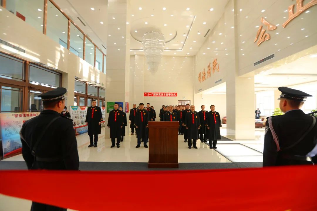 “我宣誓:忠于中华人民共和国宪法,维护宪法权威,履行法定职责,忠于祖国、忠于人民,恪尽职守、廉洁奉公,接受人民监督,为建设富强民主文明和谐美丽的社会主义现代化强国努力奋斗!”铮铮誓言响彻法院大楼,充分体现了对党和人民事业的无限忠诚,充满对守护公平正义的敬畏之心,饱含对新时代人民司法事业的热爱之情,“国家宪法日”宣誓活动是全体干警向宪法作出的庄严承诺,也是对社会公众作出的承诺。