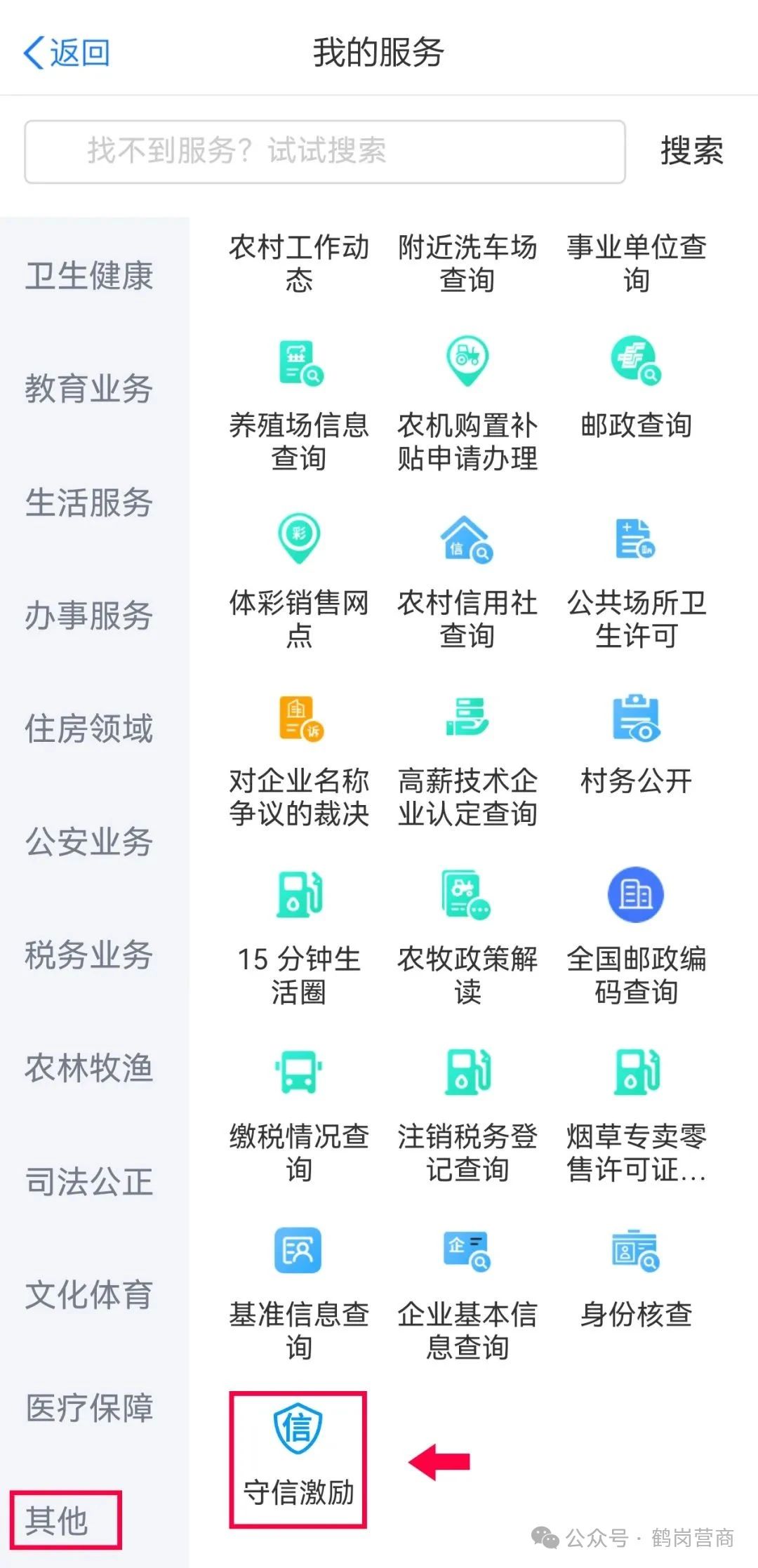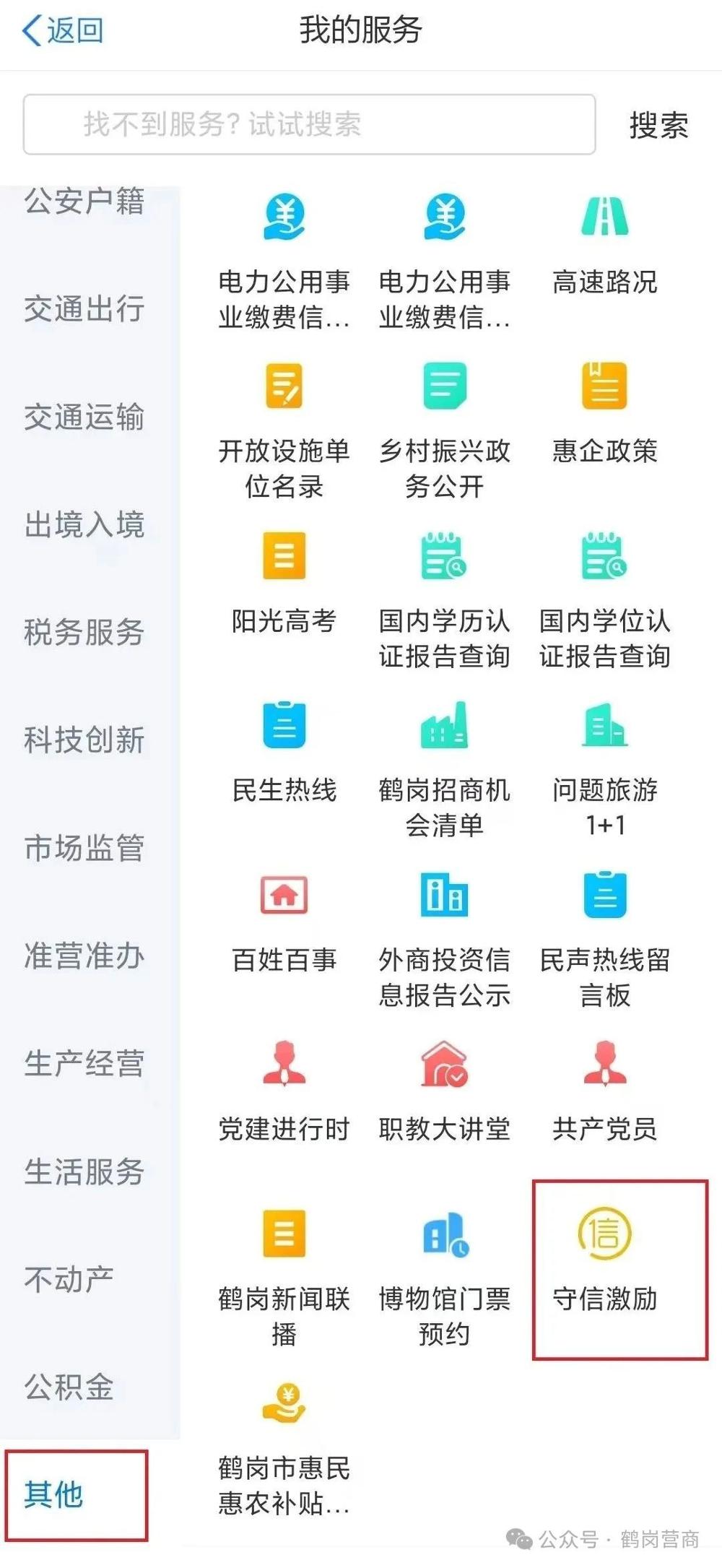 二、左侧导航选择“其他”,界面最下面,找到“守信激励”;