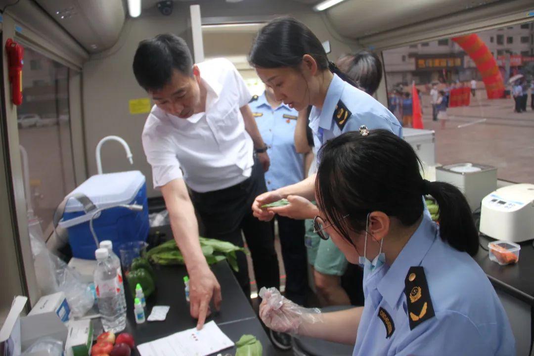 启动仪式后,苏民厚实地参观了各单位食品安全工作宣传展台及市场监管部门食品安全“你点我检”活动。